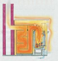Kachelofens. Das Konzept der Strahlungswärme wird vor allem dann