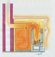 Heizeinsatz mit einem Kessel kombiniert wird. Entweder als aufgesetzter
